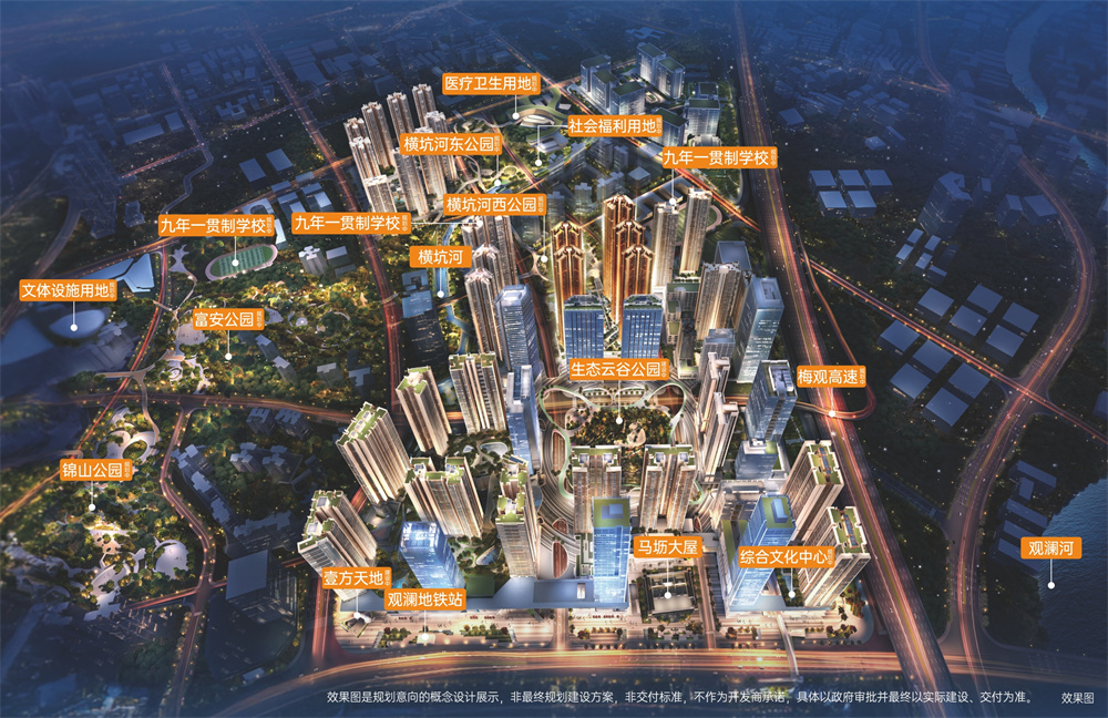5大公园融入社区/起步即城市级公建/规划梅观高速直连(规划中),横跨30年的眼界、诸多领先设计,造就超越当代的都市活力地标环;统合历史文脉、自然山水、城市建设、多元业态,构建全生命周期的城市中心理想典范。